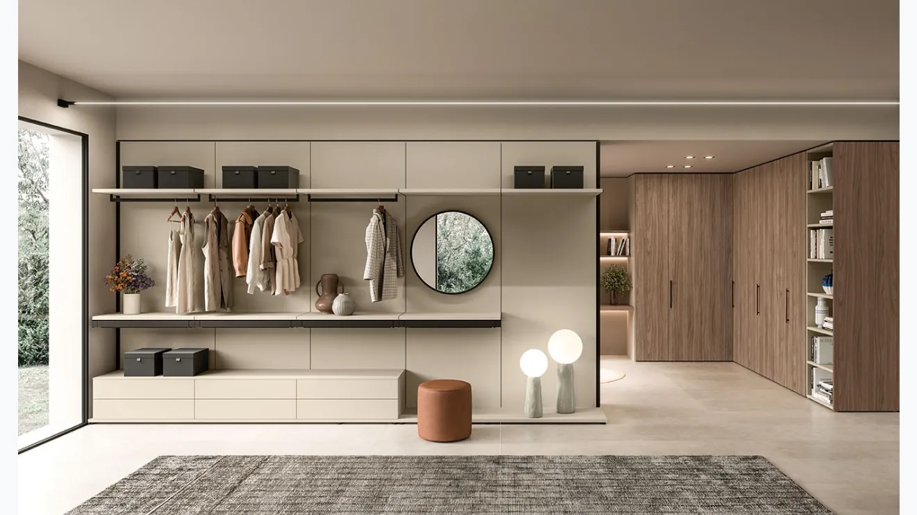 Si vous voulez des armoires de dressing avec des portes battantes, cliquez et découvrez l'armoire Cabina Armadio Wall System Tortora de Cinquepuntozero en laqué mat.