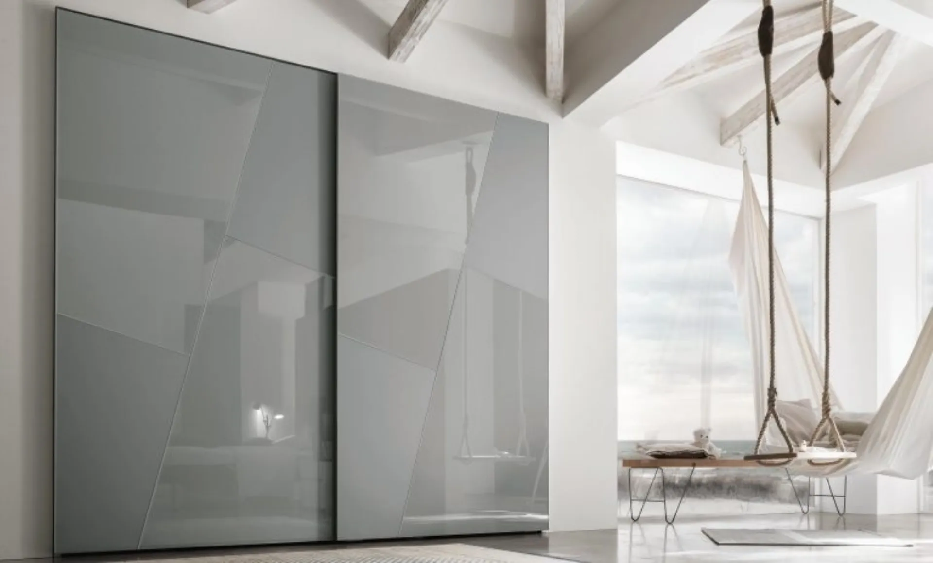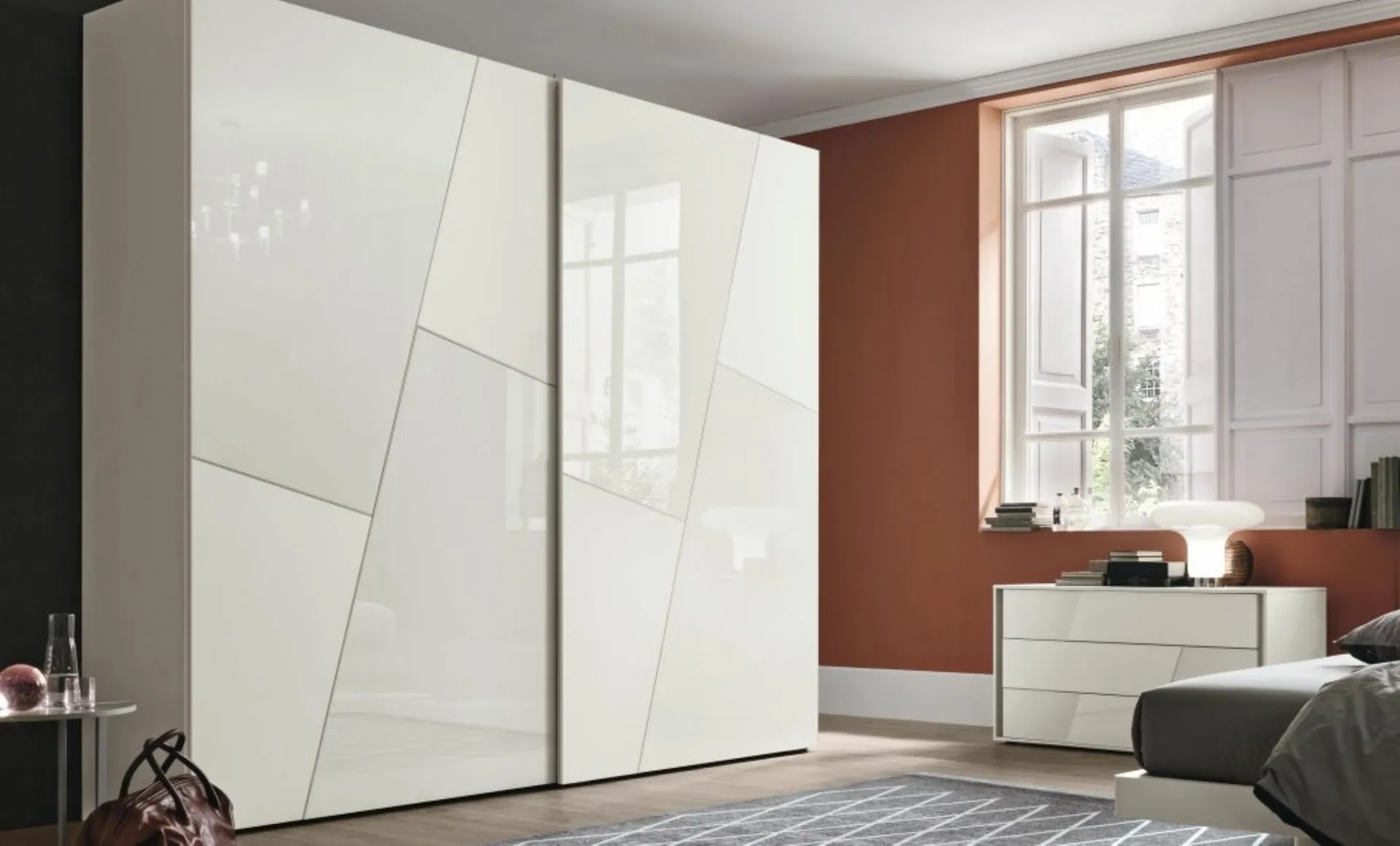 Armoire à portes coulissantes design en laque mate et verre