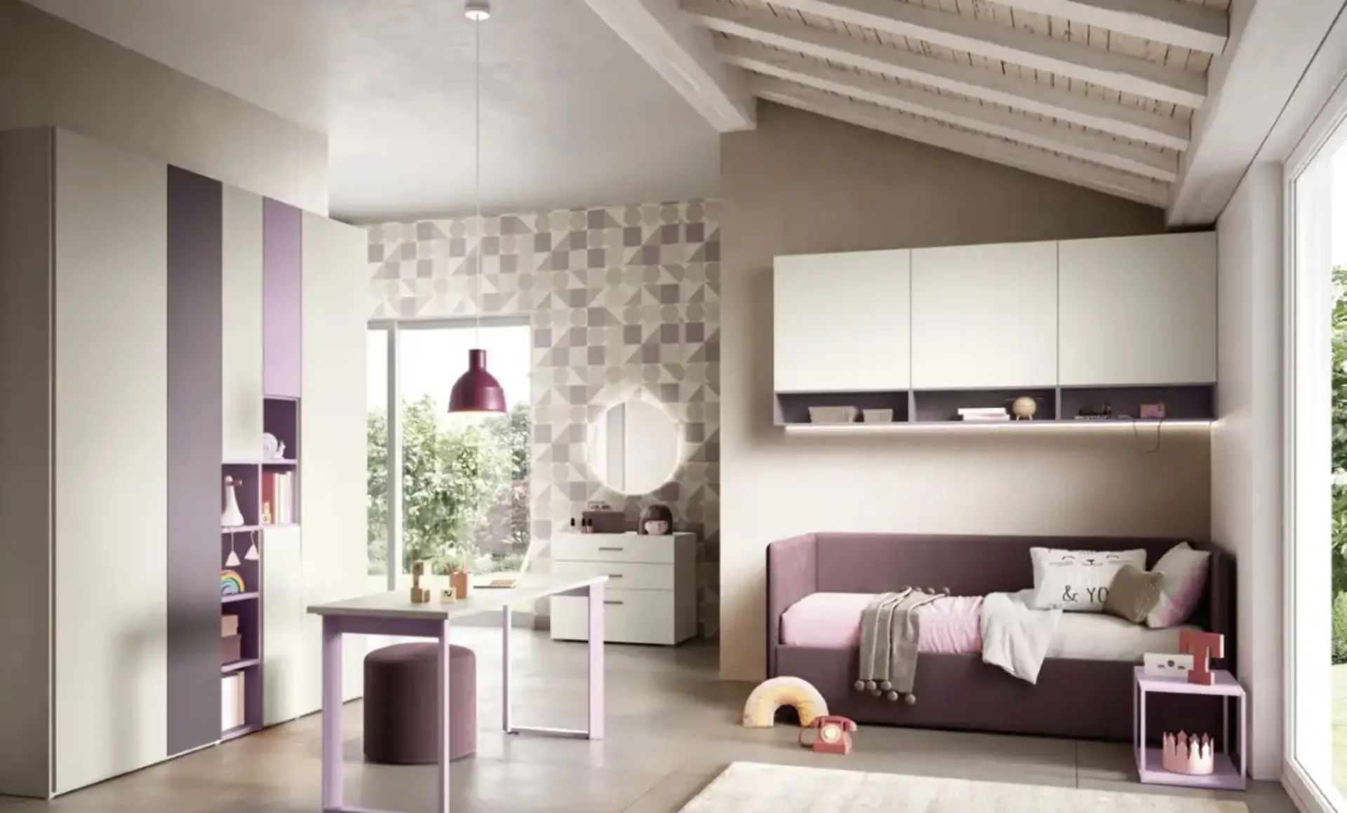 Avec cette chambre K106 Moretti Compact Camerette, parmi les solutions modulaires, vous pourrez concevoir des chambres modernes pour les filles.