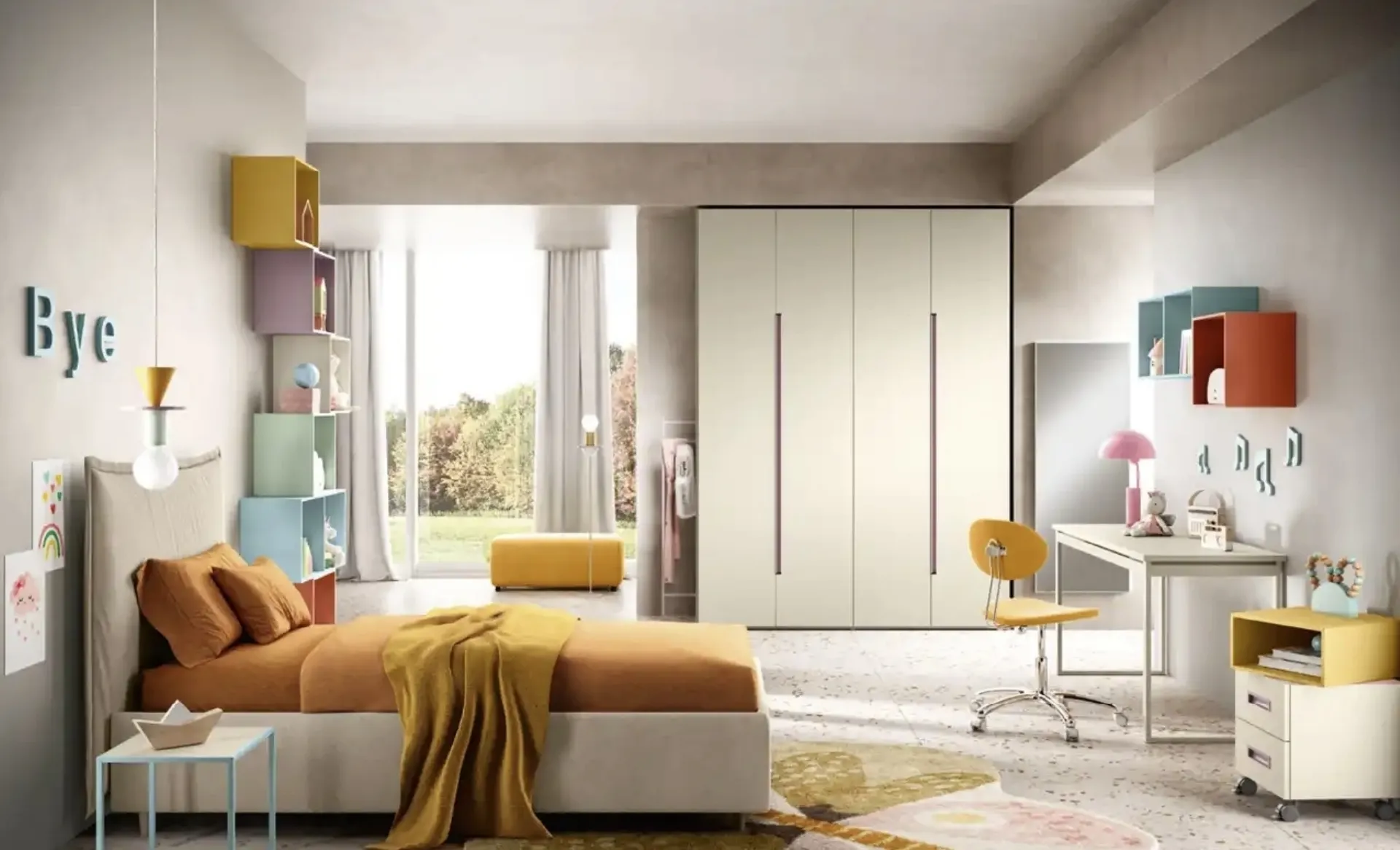 Dans l'aménagement de la chambre des enfants confiés à nous : dans notre salle d'exposition, nous proposons toutes les compositions d'ameublement modernes les plus exclusives pour leur chambre. Apportez du design et des tons vifs dans la chambre dédiée aux plus petits avec cette solution, l'une des chambres modulables pour enfants de Moretti Compact Camerette. Cette solution en mélaminé allie parfaitement les qualités pratiques et la valeur esthétique de la chambre, car elle est capable de combiner fonctionnalité et ergonomie. Si vous recherchez des idées créatives pour organiser parfaitement la chambre de vos enfants, nous vous proposons la chambre K107 de Moretti Compact Camerette avec une finition en mélaminé.
