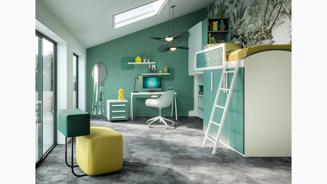 Chambres en mezzanine pour enfants : découvrez le modèle laqué mat Top CM 318 de Giessegi pour chambres modernes.