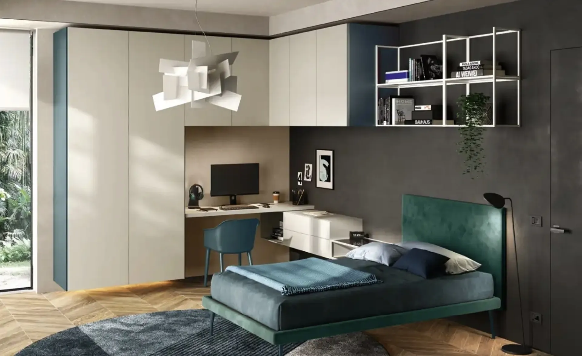 Avec cette chambre Y111 de Moretti Compact Camerette, parmi les solutions de pont, vous pourrez aménager des chambres modernes pour les adolescents.