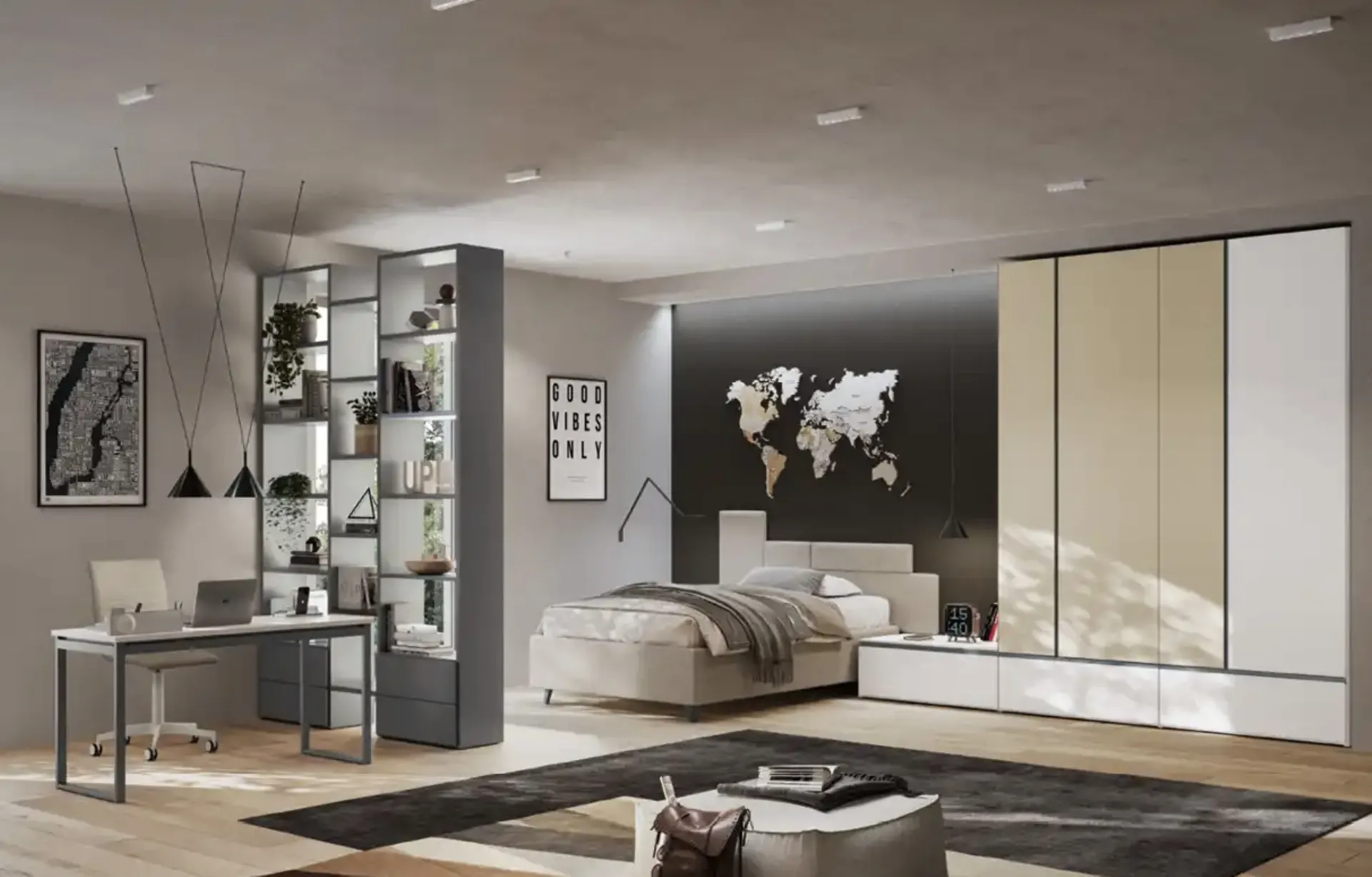 En magasin, nous vous guidons dans le choix des meubles pour la chambre à coucher et dans la conception de l'espace où vos enfants grandiront, joueront et rêveront. Avec la Chambre Y113 de Moretti Compact Camerette en laqué mat, vous vous assurerez un parfait mélange d'ergonomie et de sécurité, idéal pour la chambre de vos enfants. Nous présentons en magasin différentes Chambres d'enfants modulables au design pour garçons de la marque, idéales pour les accompagner dans leur développement. Les chambres de nos enfants sont l'endroit où ils passeront leurs premières années à jouer et à rêver, il est donc essentiel que l'espace soit pratique.