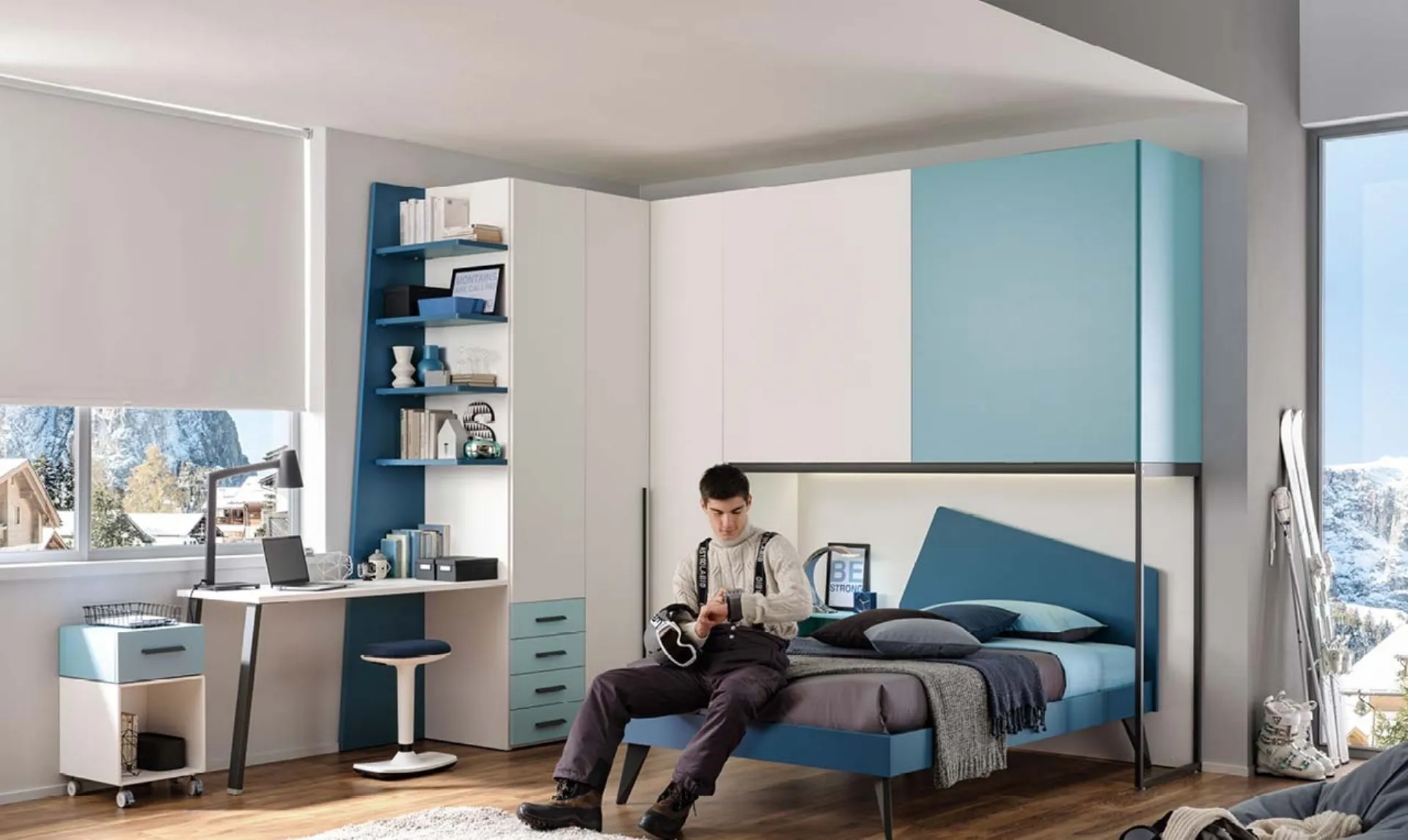 Avec cette chambre YC313 de Moretti Compact, parmi les solutions de pont, vous pourrez concevoir des chambres modernes pour les enfants.