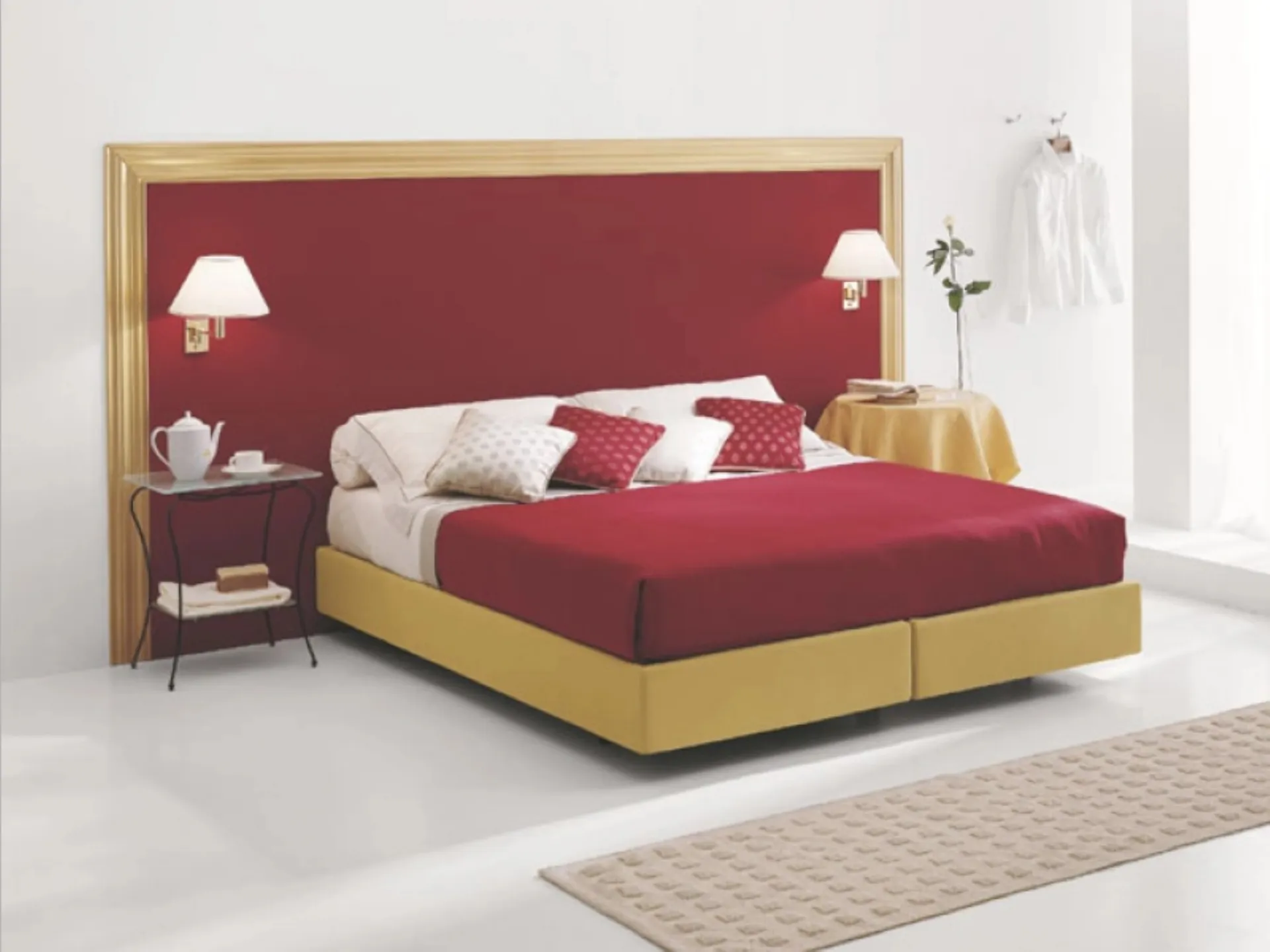 Choisissez des tons et des textures et réalisez votre projet de décoration dans la chambre à coucher, en la concevant exactement comme vous l'aviez imaginée. Les lits doubles rembourrés de la marque, spécialiste dans la production de mobilier de maison pour la chambre à coucher, sont conçus pour être associés à des meubles et accessoires de tous types, tels que des armoires et des tables de chevet, des lampes de chevet et des lampadaires. Si vous souhaitez une solution en tissu, le modèle visible sur la photo est caractérisé par des matériaux de qualité et des formes bien définies, invitant à profiter d'un sommeil profond et réparateur. Lors du choix du bon type de lit, veillez à bien examiner ses dimensions, ses finitions, sa forme et son style par rapport aux autres éléments de décoration.