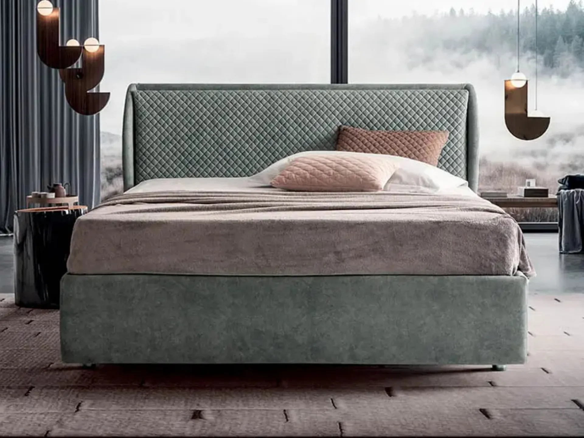 Les lits matrimoniaux rembourrés de la marque, spécialiste en ameublement de chambre à coucher, sont conçus pour être assortis à des meubles et accessoires de toutes sortes, tels que des armoires et des commodes, des lampes et des lampadaires. Choisissez des tons et des finitions et réalisez votre projet d'aménagement dans la chambre à coucher, en la concevant exactement comme vous l'avez toujours imaginée. Le Lit rembourré Calipè de Rigosalotti crée un espace accueillant et confortable dans chaque chambre à coucher, vous garantissant le meilleur repos et un design unique. Lors du choix d'un bon modèle de lit, veillez attentivement à ses mesures, aux matériaux, à la forme et à son style par rapport au reste de votre mobilier.