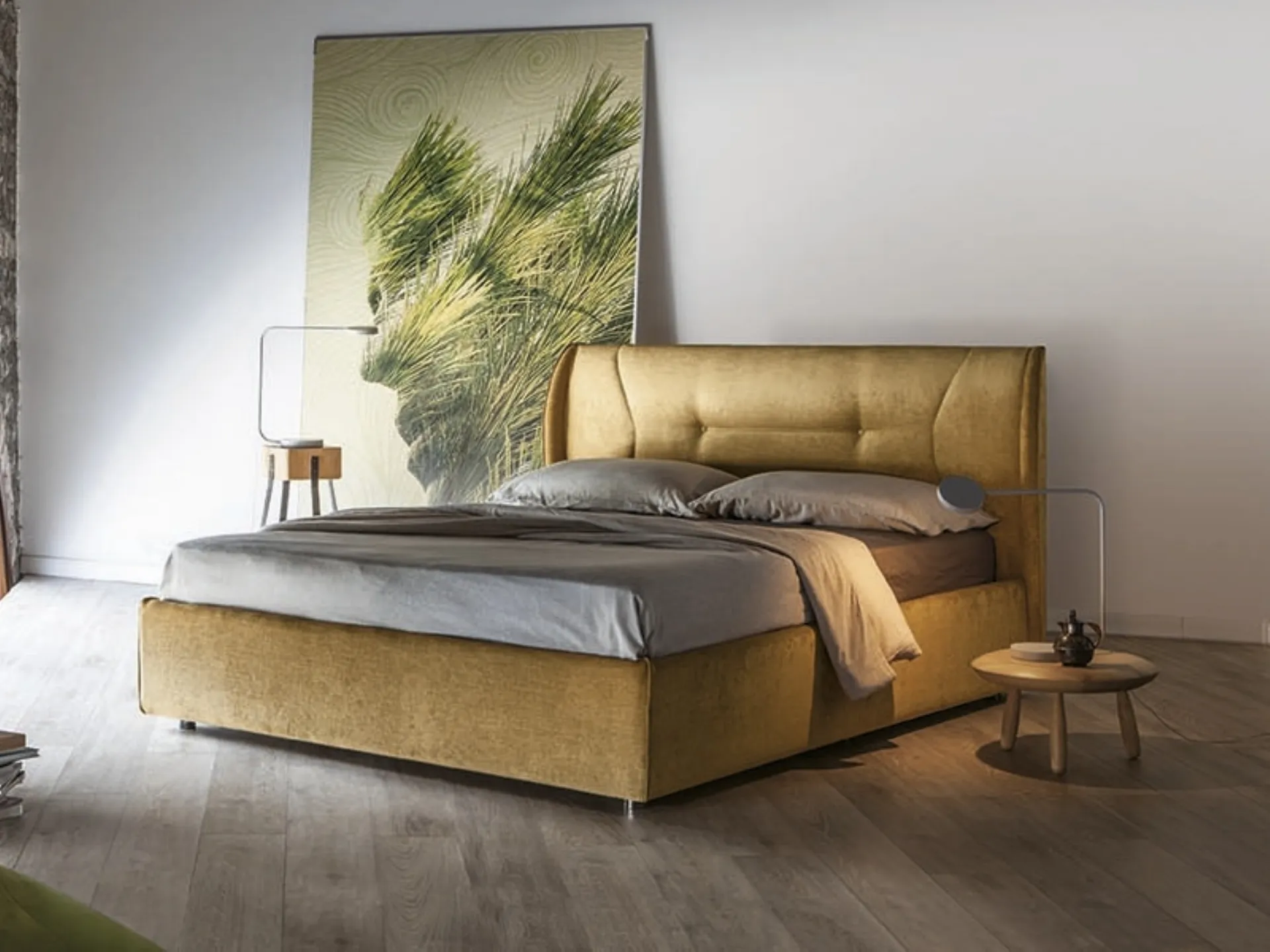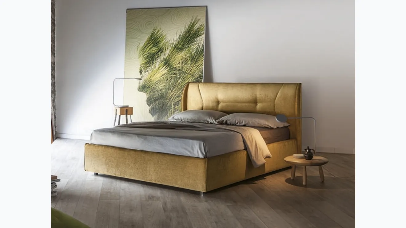 Le lit Demetra avec coffre de rangement de Rigosalotti embellit la chambre, garantissant un sommeil