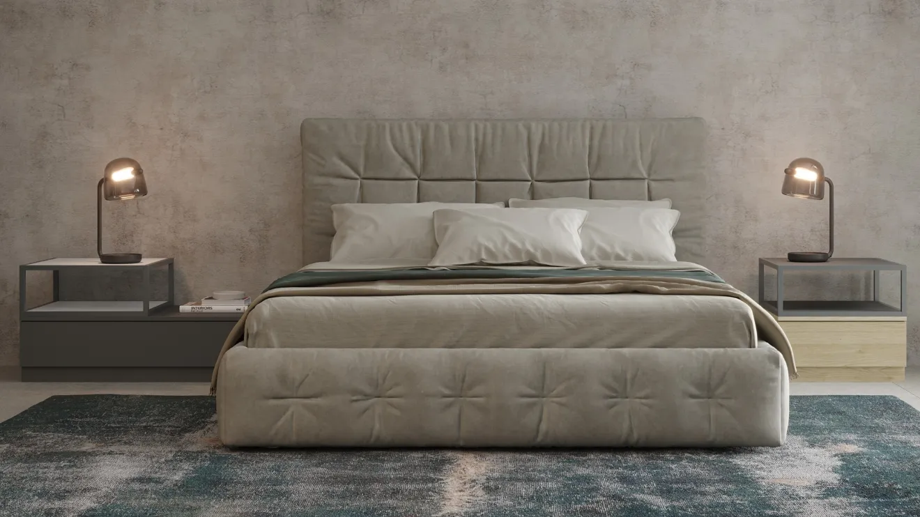 Si vous souhaitez une solution en tissu, le modèle présent sur la photo est caractérisé par des matériaux durables et des formes affirmées, invitant à profiter d'un sommeil serein et régénérant. Choisissez des couleurs et des finitions et réalisez votre concept d'aménagement dans la chambre à coucher, en la concevant exactement comme vous l'avez toujours rêvée. Lors de l'achat du bon type de lit, veillez attentivement à ses dimensions, ses matériaux, sa forme et son style par rapport au reste de votre ameublement. Les lits matrimoniaux rembourrés de l'entreprise, leader dans la réalisation de mobilier de chambre à coucher, sont conçus pour être assortis à des meubles et accessoires de toutes sortes, tels que des armoires, des commodes, des lampes et des lampadaires. Le lit avec tête de lit Gastone de Giessegi crée un espace chaleureux et confortable dans chaque chambre à coucher, vous garantissant une détente totale et un style unique.