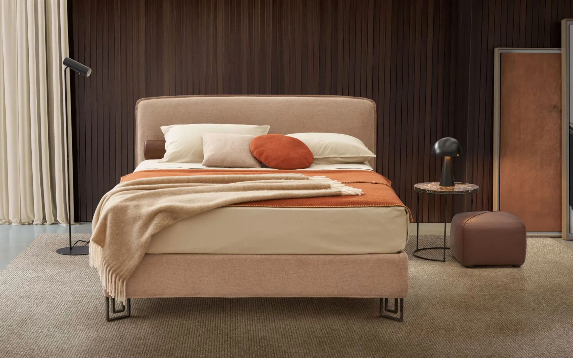 Veux-tu organiser la chambre à coucher? Nous te présentons le lit en tissu Kiss de Rosini Night pour des espaces modernes.