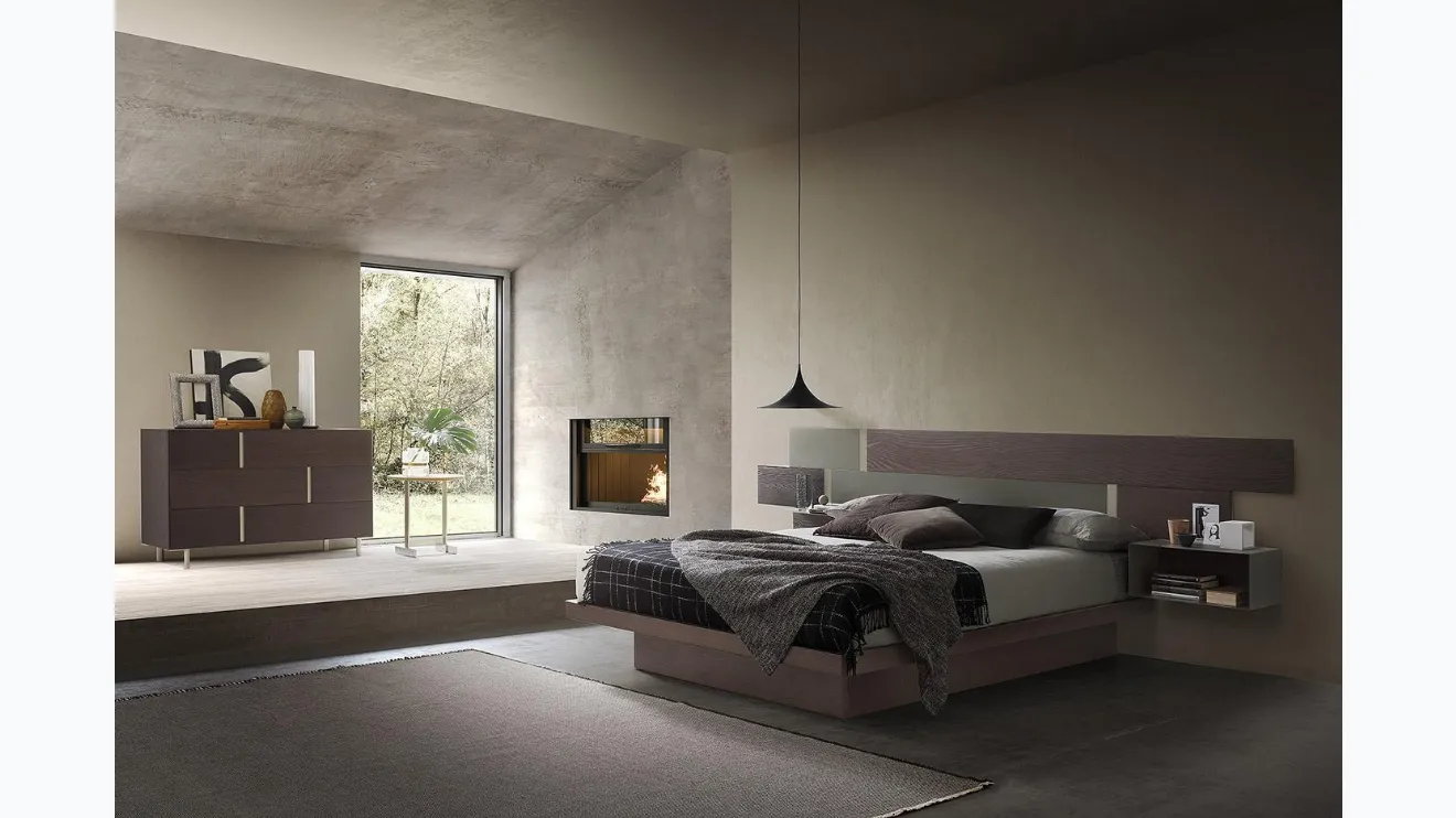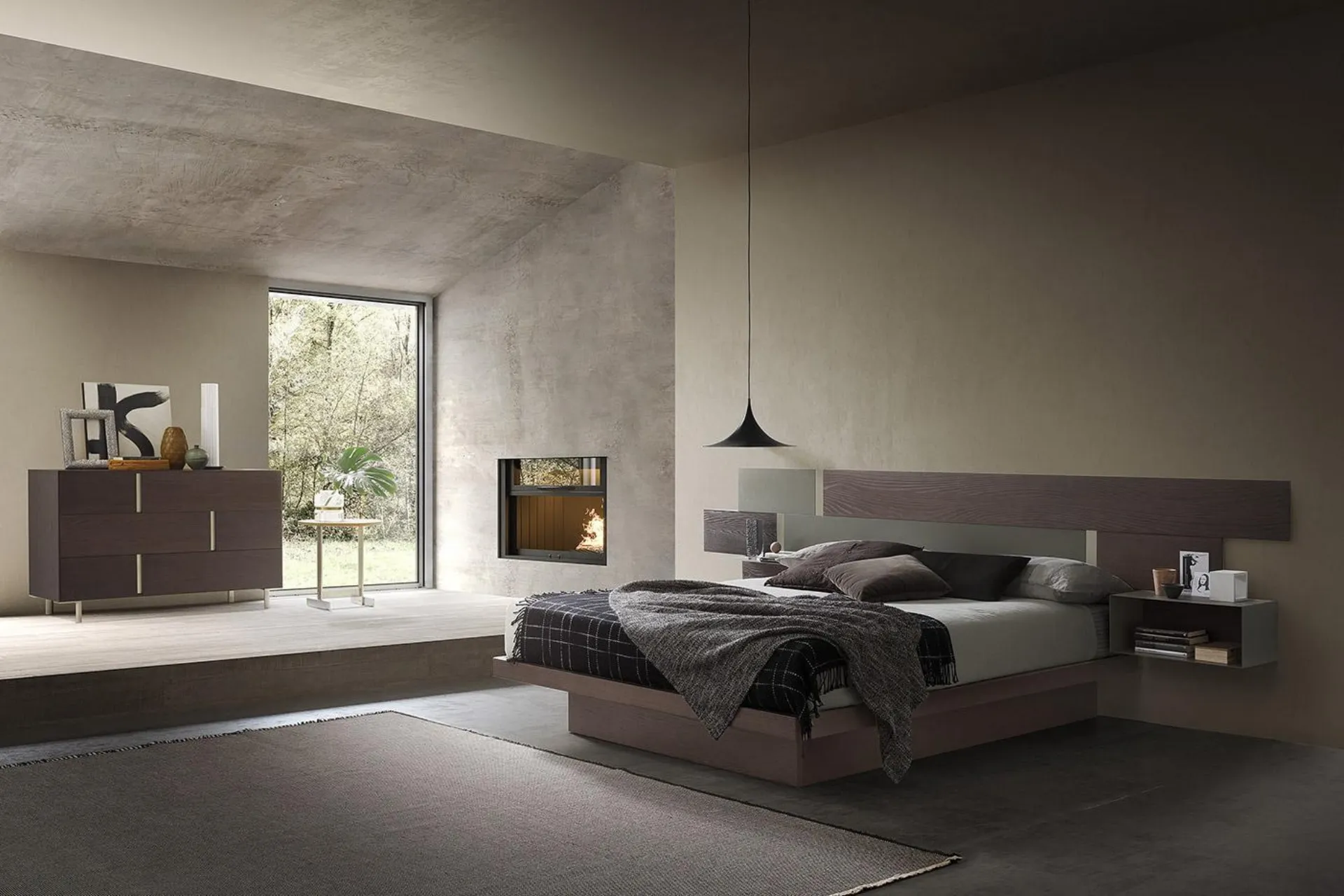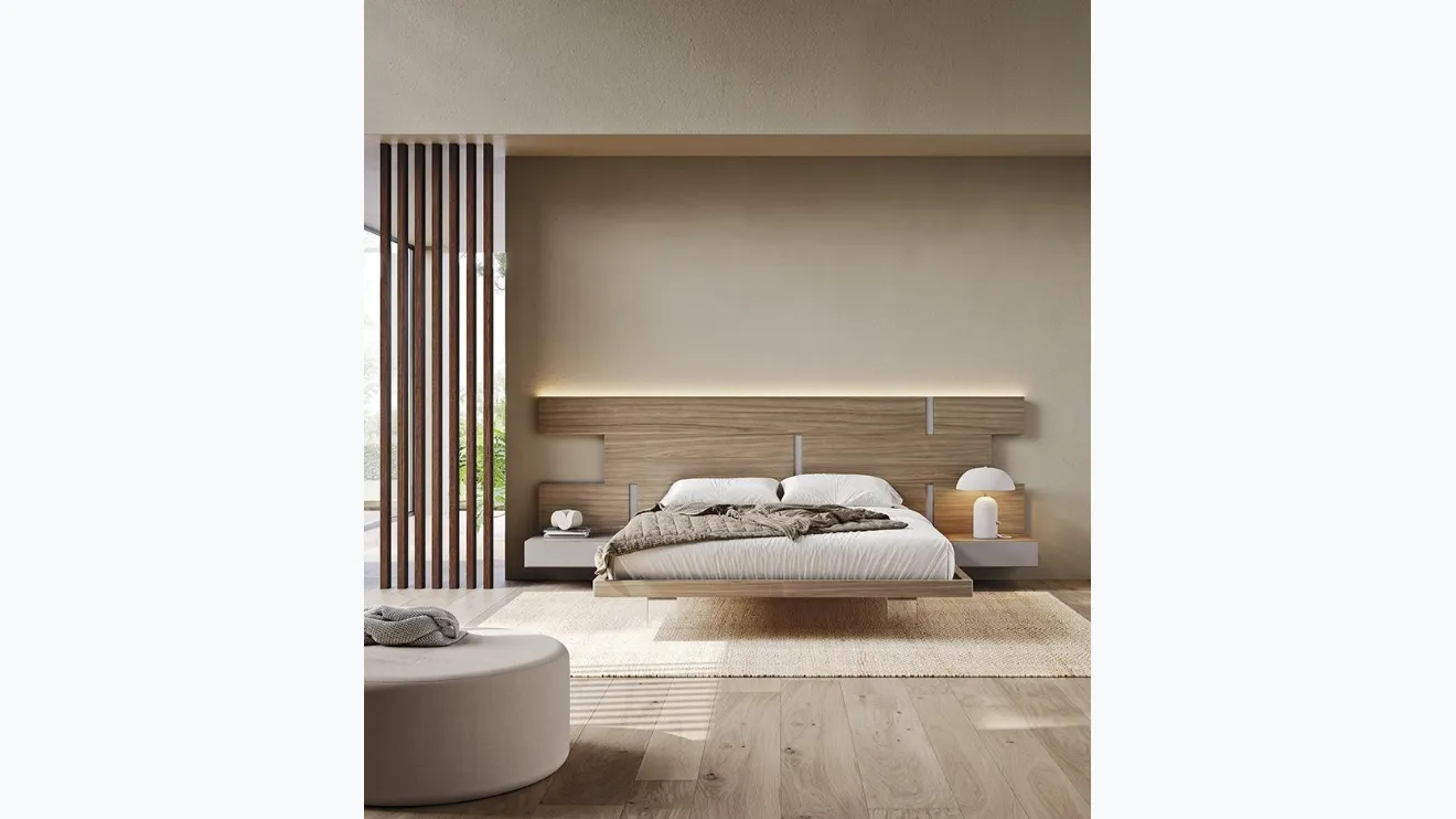 Le lit Regolo avec tête de lit de Mobilgam valorise l'espace nuit, garantissant le meilleur repos e