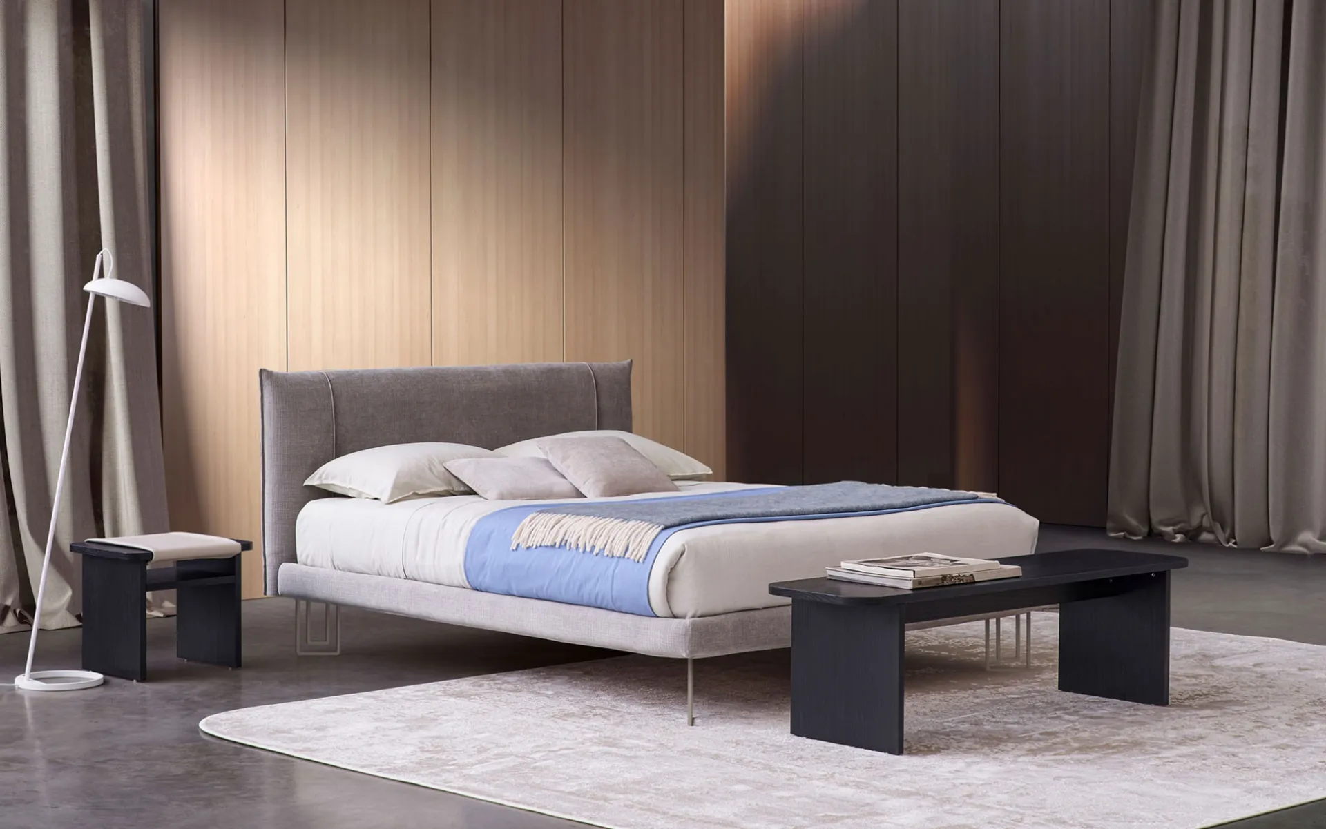 Veux-tu renouveler la chambre à coucher ? Voici le lit en tissu Sakura de Rosini Night pour des espaces modernes