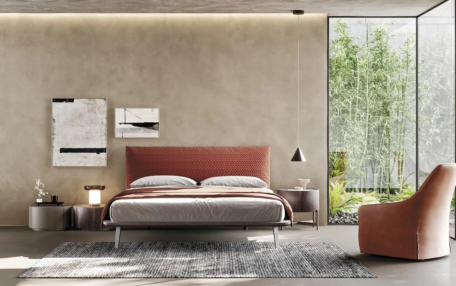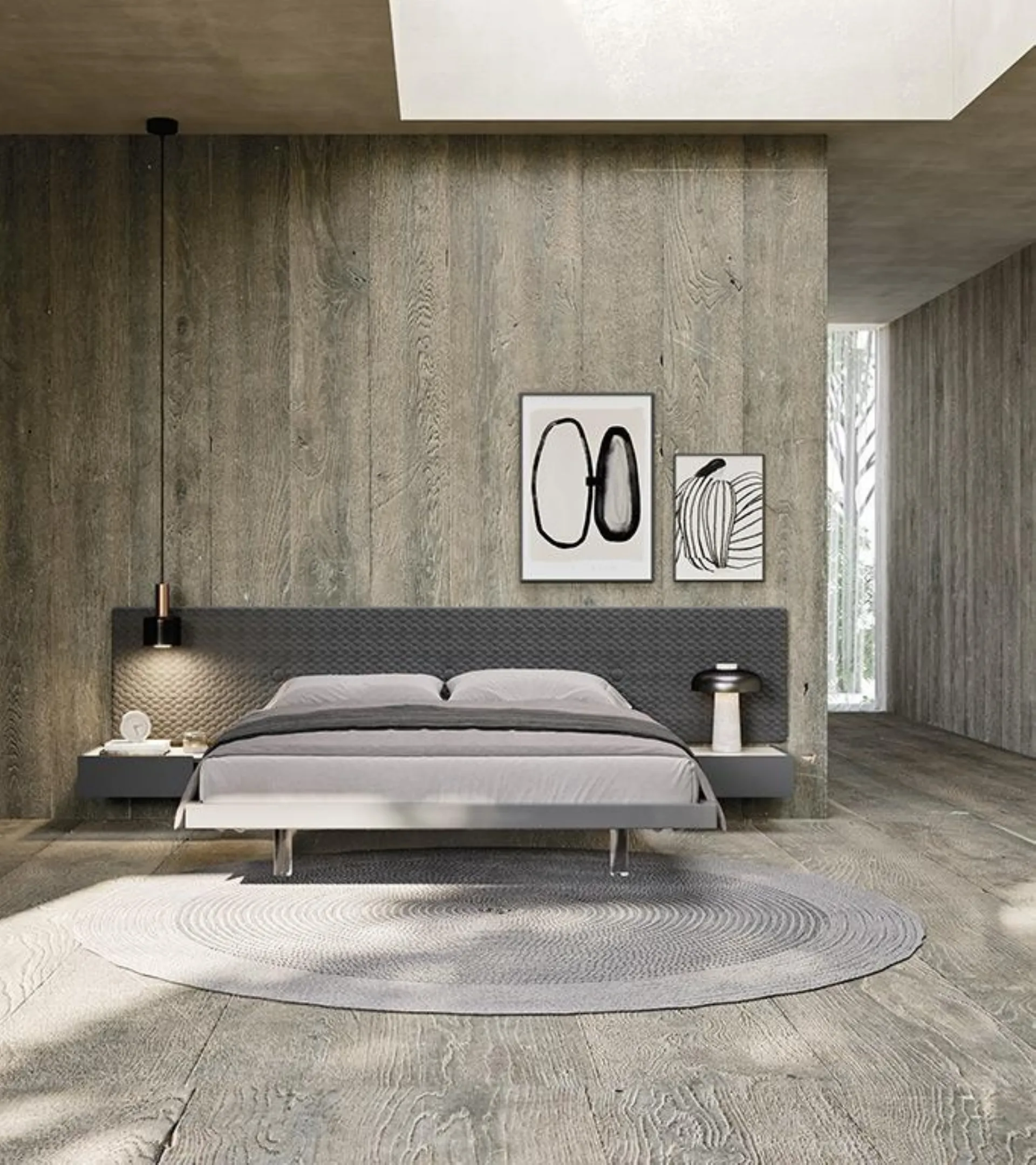 Le lit rembourré de Mobilgam est l'une des solutions les plus originales de la marque, spécialiste du bon sommeil, capable d'assurer fonctionnalité, confort et un design unique. Découvrez une large gamme de lits rembourrés des meilleurs fabricants de mobilier pour la maison disponibles dans notre showroom et optimisez votre chambre à coucher. Si vous voulez vous assurer un confort total pendant vos moments de repos, choisissez des lits doubles modernes en tissu comme le modèle présent sur la photo. La chambre à coucher est l'espace de la maison qui reflète le plus le goût de celui qui l'utilise, l'intérieur entièrement dédié au repos, à la détente et à l'intimité.