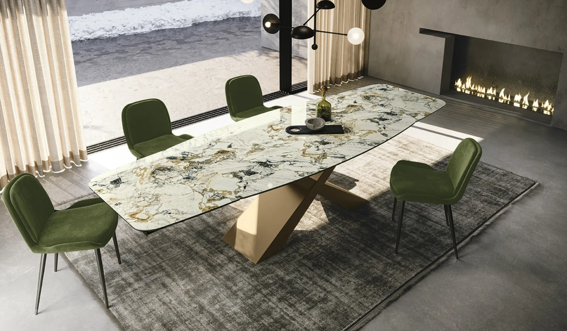 Si vous recherchez des tables extensibles au design élégant, nous vous présentons le modèle de table à manger en céramique Gold de l'entreprise S