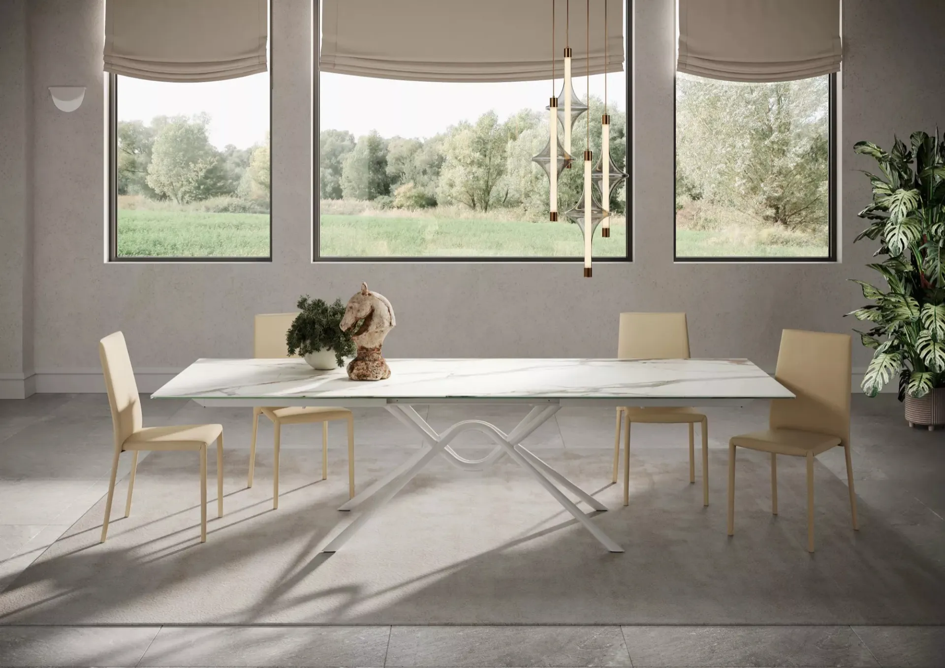 Les tables sont parmi les meubles et accessoires importants de l'environnement quotidien et de la cuisine, des espaces dédiés à la convivialité où l'on passe du temps en compagnie d'amis et de proches. La table Hunter de Bontempi : dans notre magasin, vous trouverez une gamme presque infinie de compositions d'ameublement au design sophistiqué. La marque exclusive Bontempi propose un catalogue riche de tables à manger extensibles, y compris celles idéales pour mettre en valeur des espaces modernes. Un de nos modèles de table extensible saura mettre en valeur votre projet d'ameublement avec fonctionnalité et style. Une table digne de ce nom doit être fabriquée avec des matériaux durables, pour qu'elle soit résistante et conserve au fil du temps la valeur esthétique qui la caractérise.