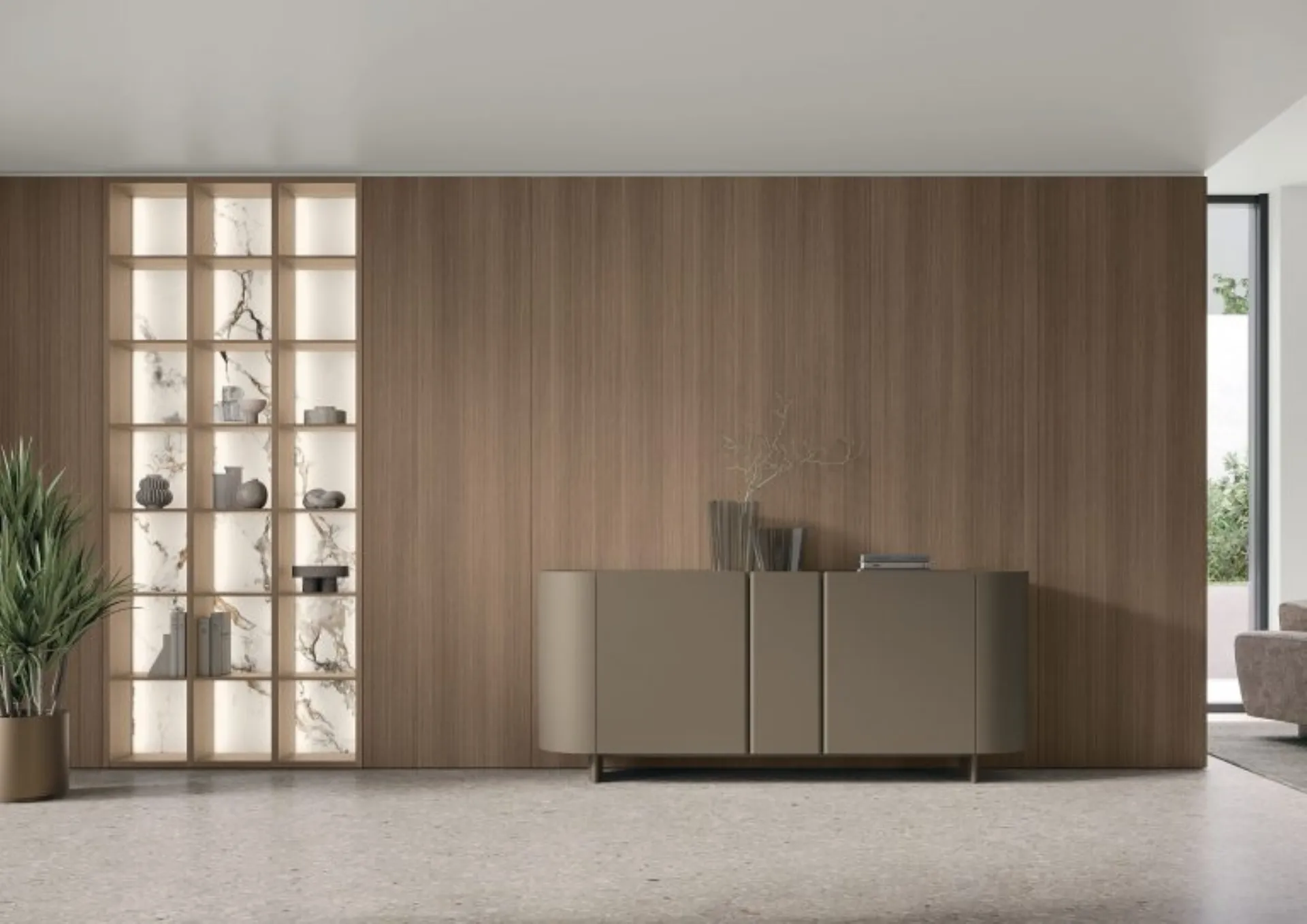 Les buffets modernes, parmi lesquels le modèle présent sur la photo, mettent en valeur le salon ou la salle à manger grâce à des lignes bien étudiées et de grandes capacités de rangement. Même dans un espace de vie de petite taille, ces meubles de salon peuvent répondre à différents besoins en assurant différentes possibilités de personnalisation sur mesure. Si vous êtes passionné par la décoration et que vous êtes toujours à jour sur l'évolution du design dans ce domaine, notre showroom est l'endroit idéal pour vous. La Madia Calipso Tomasella en photo dans une finition mate résout les besoins les plus particuliers en termes de style et d'espace, décorant le salon avec fonctionnalité et un design unique.