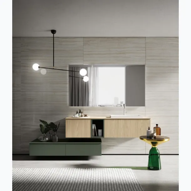 Meubles de salle de bain suspendus en bois de la marque Puntotre : cliquez et découvrez l'ameublement de salle de bain moderne Roma 07 pour