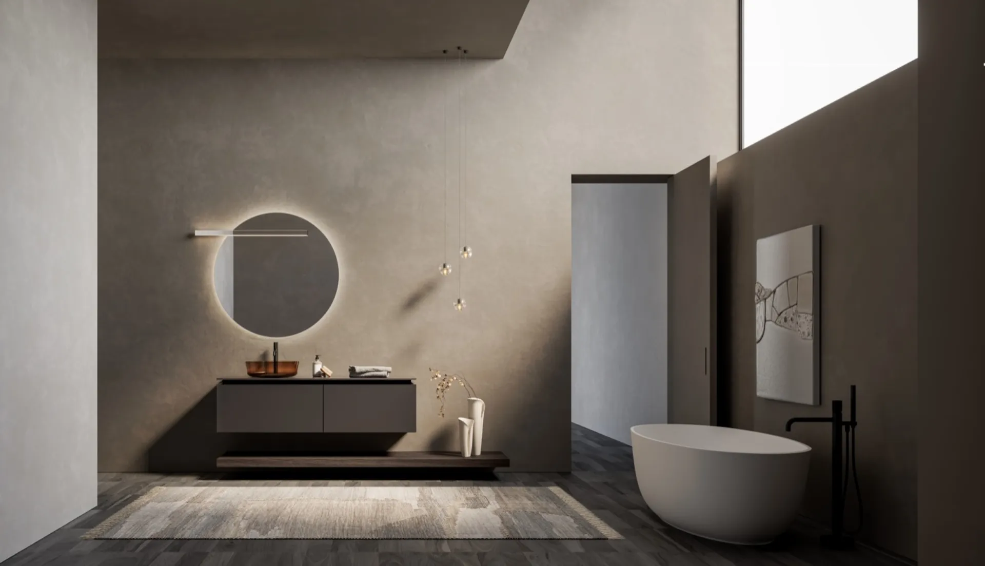 Meuble de salle de bain Alto 05 de Puntotre : cliquez et découvrez-en plus sur les meubles de salle de bain suspendus en polymère et les accessoires de
