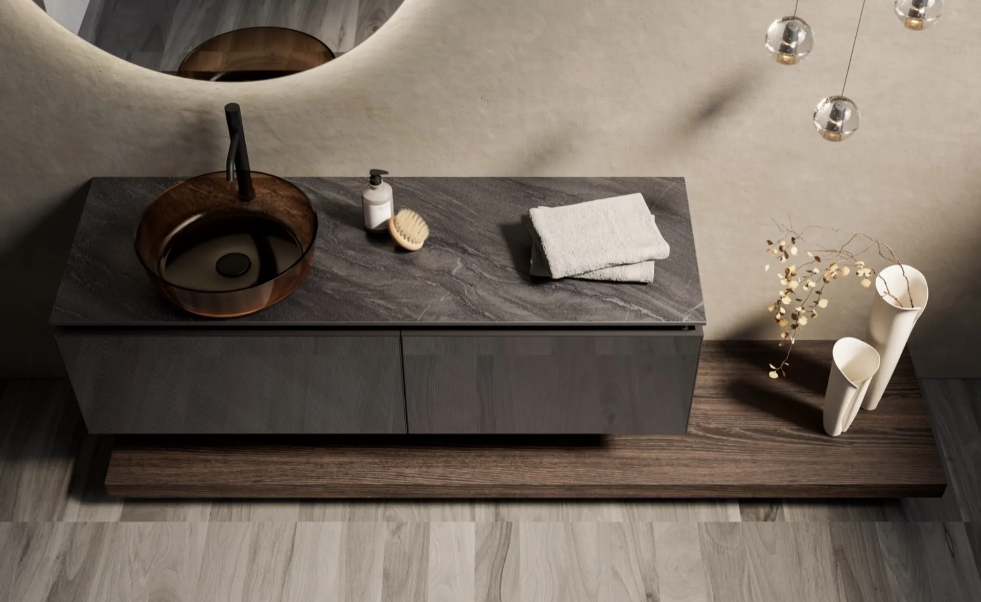 La salle de bain est l'espace dédié au bien-être et aux pratiques de soins personnels, il doit donc être décoré en alliant praticité et design. Les salles de bains diffèrent en fonction des goûts et des dimensions, il est donc indispensable que chacun trouve la solution idéale selon ses besoins. Avec une large gamme de compositions de l'entreprise Puntotre, vous pourrez aménager votre salle de bain avec la plus grande précision, en répondant à vos besoins en matière d'aménagement intérieur. Les nuances, les matériaux et les éléments que la marque propose pour le mobilier de salle de bain moderne avec des meubles suspendus permettent de décorer divers environnements. Chaque projet réalisé avec les produits de l'entreprise est caractérisé par des meubles de salle de bain suspendus de différentes sortes, toujours en matériaux de première qualité et résistants.