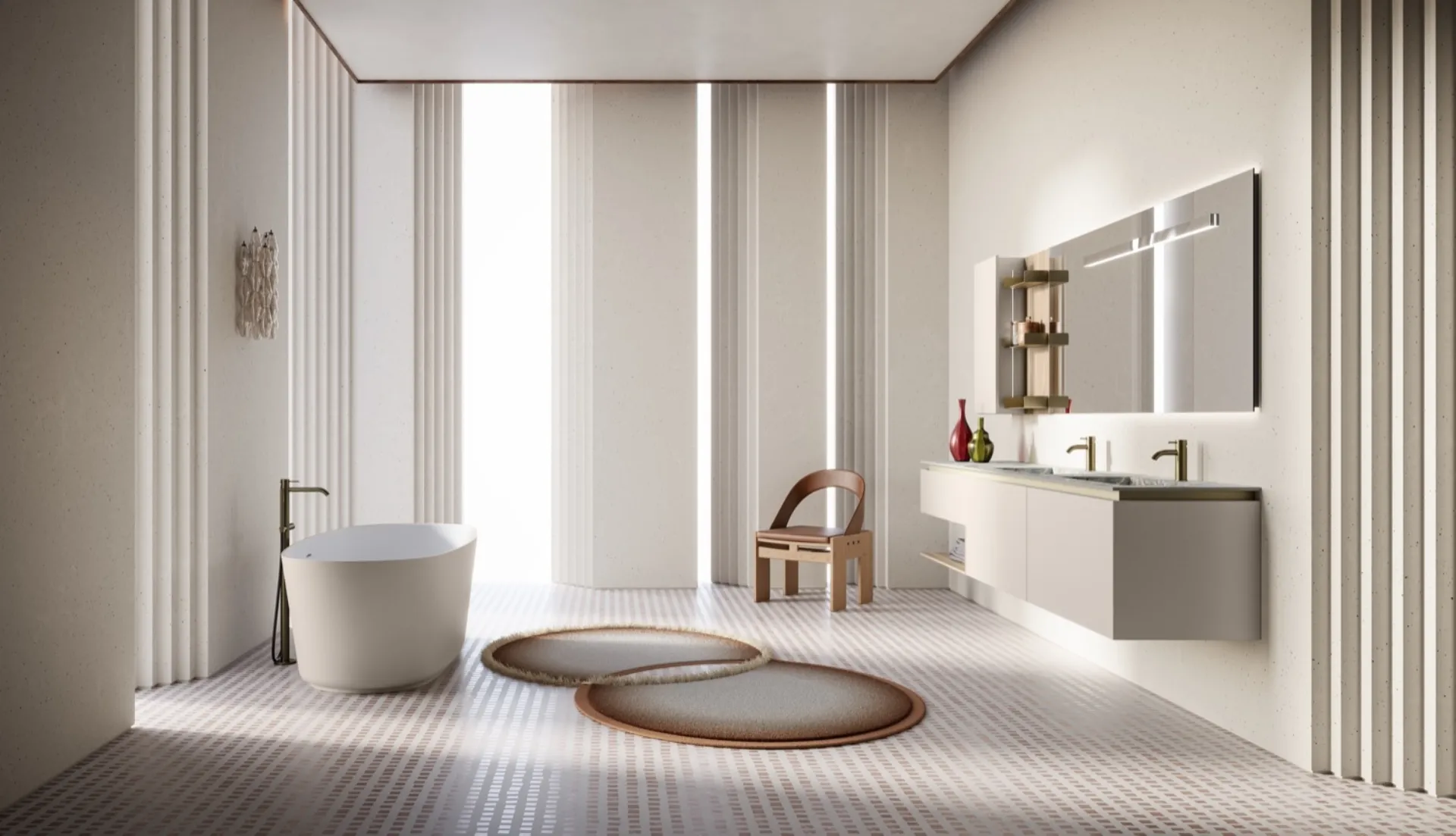 Mobili da bagno sospesi Alto 06 di Puntotre : découvrez l'ensemble de salle de bain en polymère moderne et aménagez la