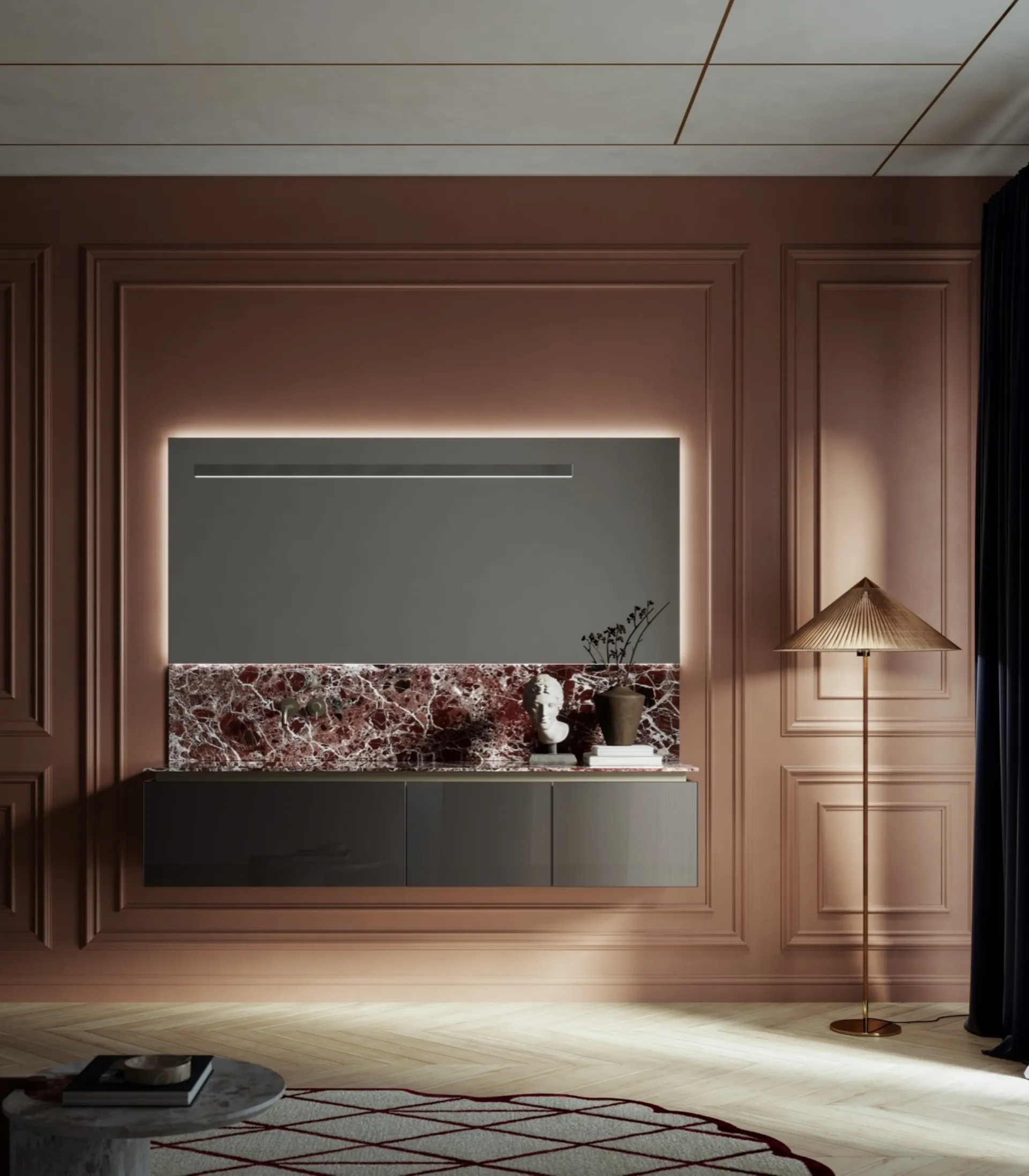 Découvrez-en plus sur le mobilier de salle de bains moderne : des meubles de salle de bains suspendus en polymère comme le modèle Alto 07 de Puntotre vous