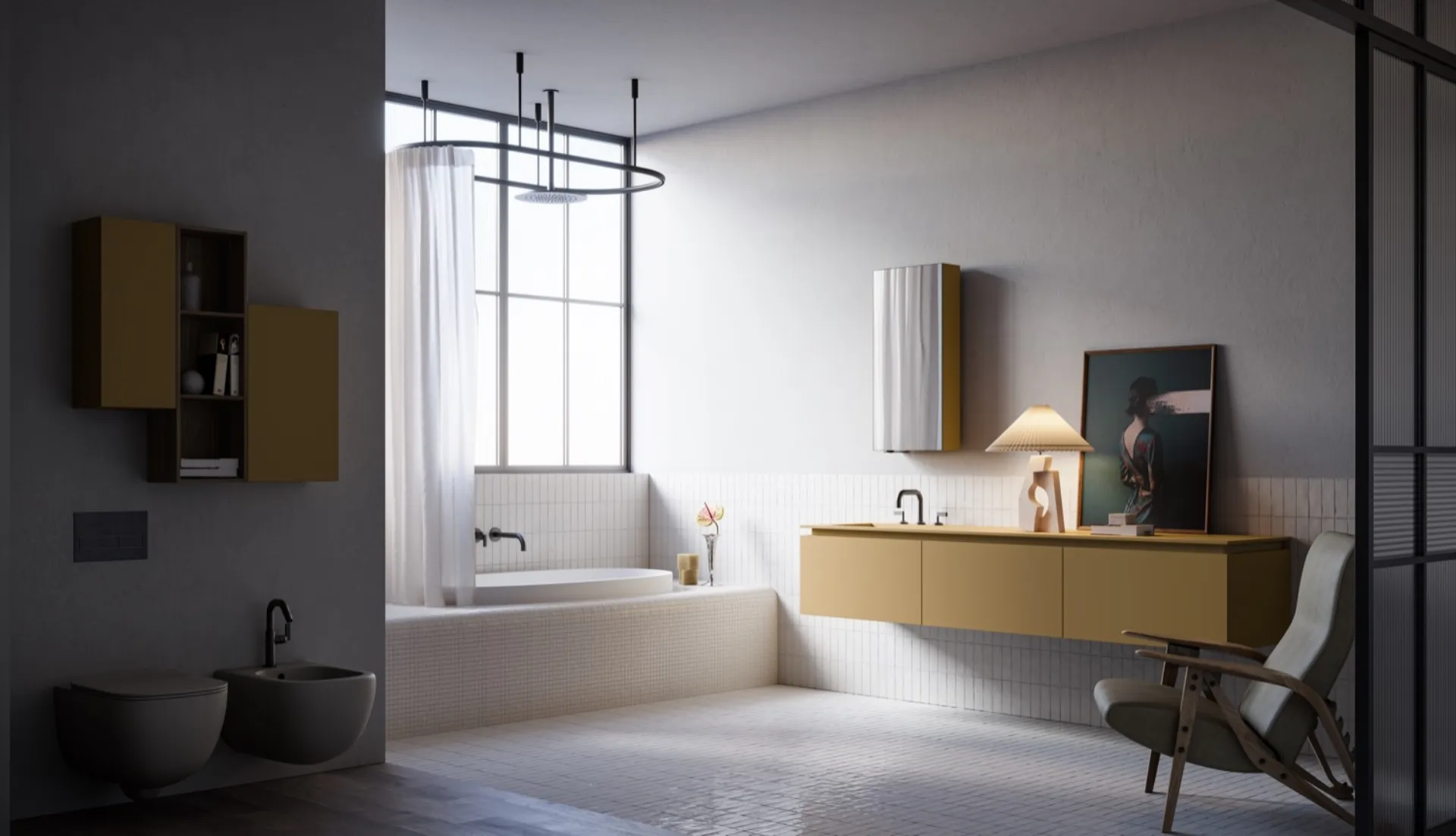 Meubles suspendus pour salle de bain Alto 14 de Puntotre : découvrez le mobilier de salle de bain en polymère moderne et aménagez la piè