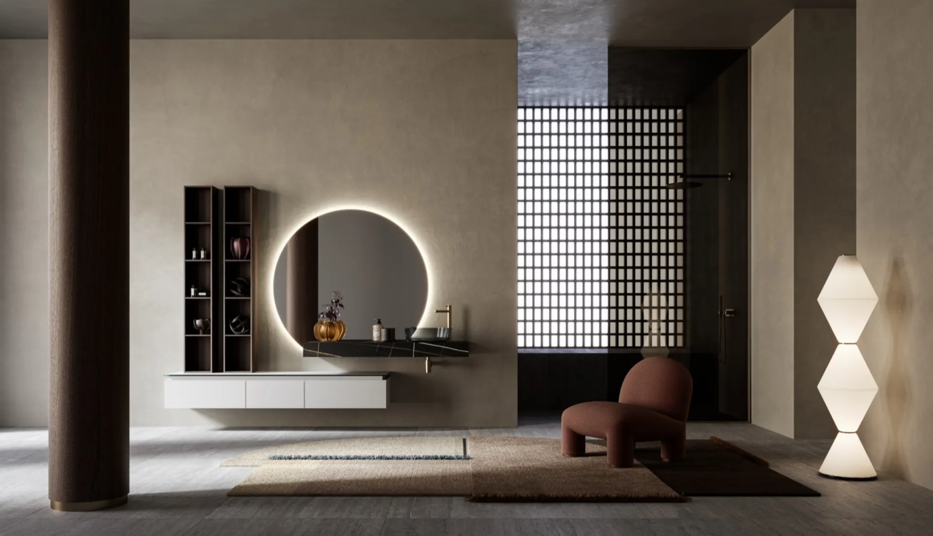 Obtenez des informations sur le mobilier de salle de bain moderne : des meubles de salle de bain suspendus en polymère, comme le modèle Alto 16 de Puntotre, vous attend