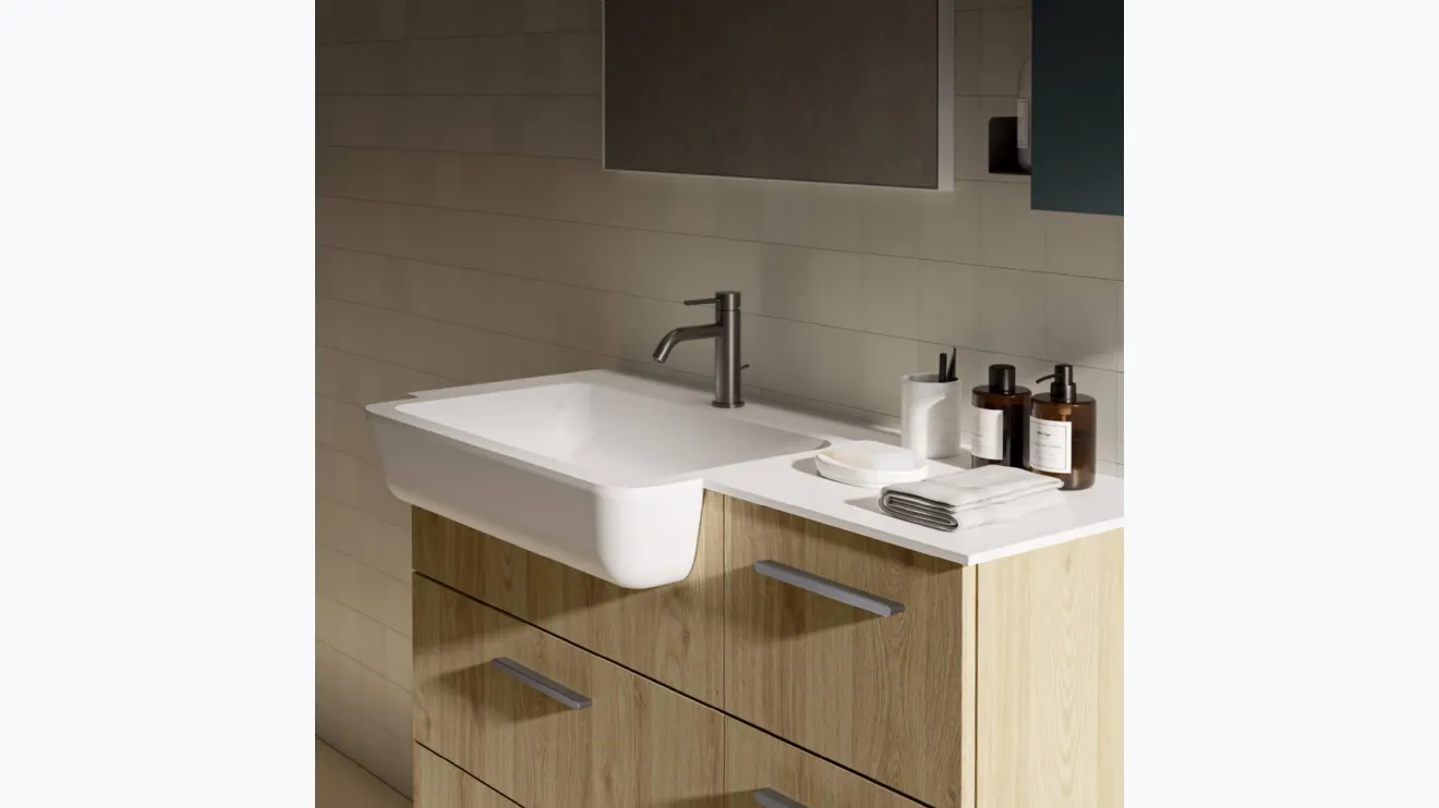 Obtenez des informations sur le mobilier de salle de bains moderne : des meubles de salle de bains au sol en stratifié comme le modèle Poignée 31 de Puntotre vous attendent.