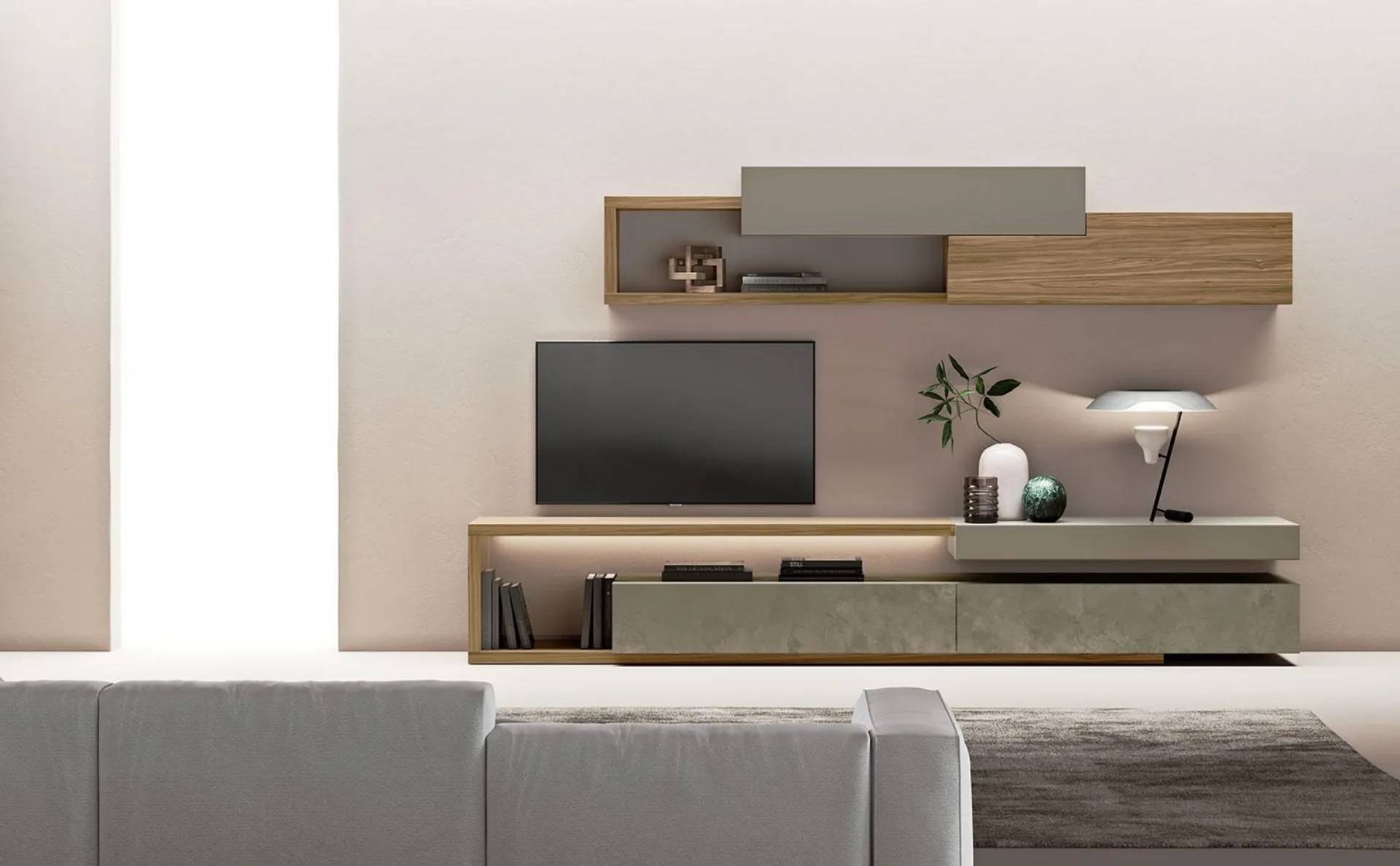 Composition murale équipée Horizon 1020 de Mobilgam pour le salon en bois