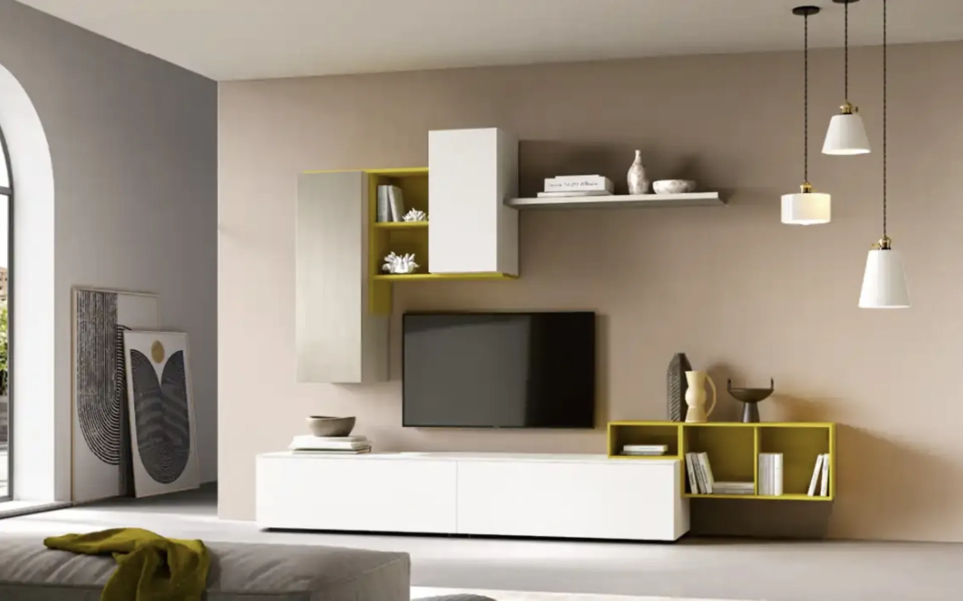 Veux-tu aménager un salon fonctionnel et pratique ? Voici pour toi le mur équipé Kosmos KF106 de Moretti Compact Jour Nuit aux formes modernes et affirmées.