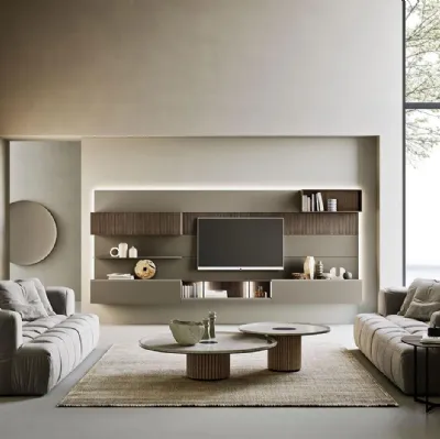 Veux-tu meubler un salon pratique et dynamique ? Voici pour toi le mur équipé Living LV705 Giessegi aux lignes modernes et affirmées.