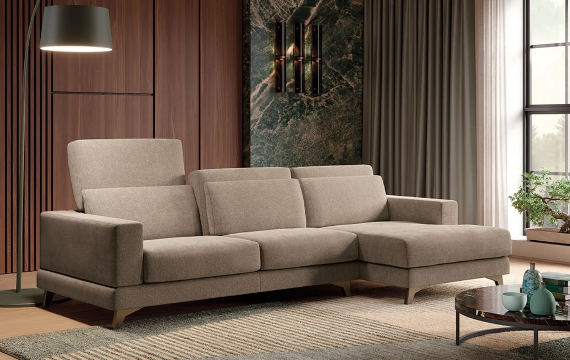 La collection de canapés de l'entreprise en question propose de nombreuses idées originales pour personnaliser le salon en alliant fonctionnalité, confort et style. Canapé avec méridienne Lift de Rigosalotti : recrée un espace intime et confortable dans des espaces au design raffiné. Le catalogue Rigosalotti propose de nombreuses idées pour personnaliser les intérieurs en alliant fonctionnalité et esthétique, en plaçant votre confort au centre. Si vous recherchez des canapés et fauteuils avec méridienne comme le modèle en photo, caractérisés par des volumes qui invitent à passer des moments de détente.