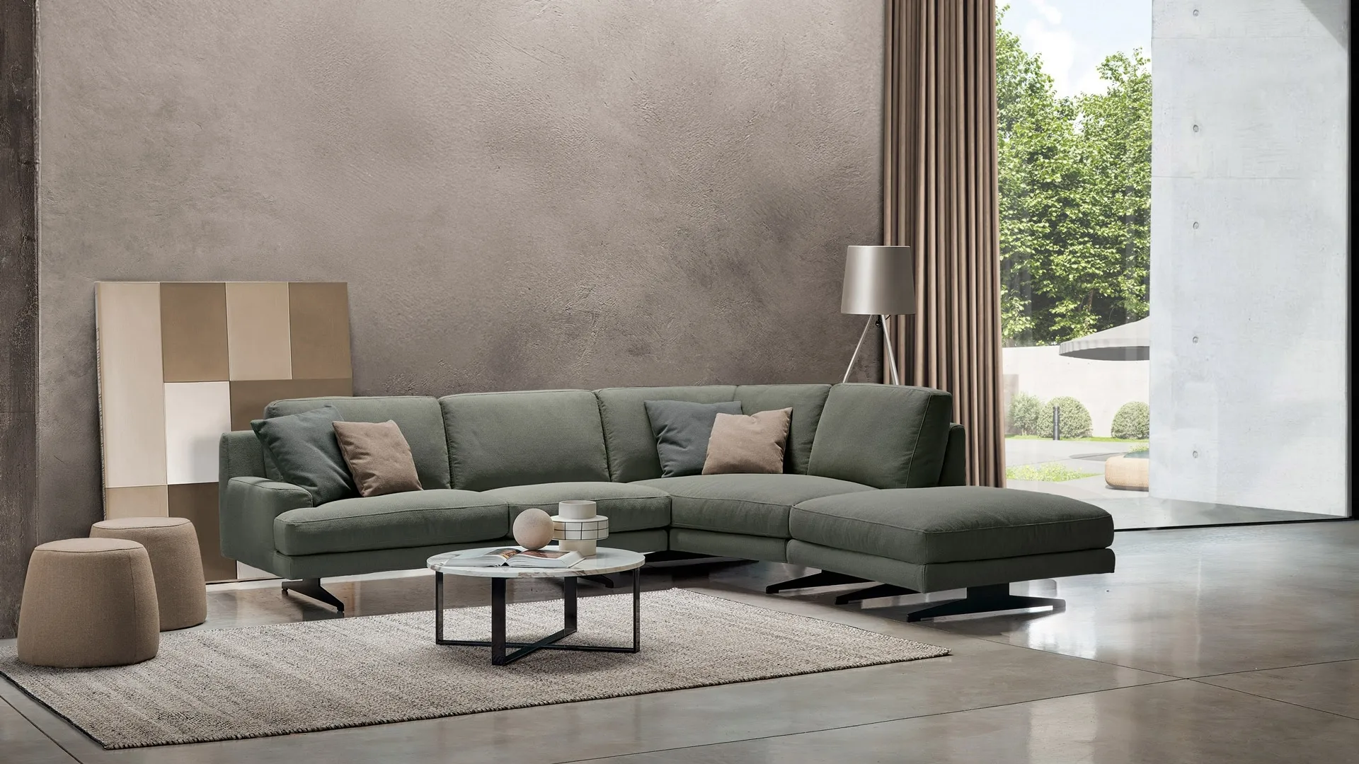 Avec des salons et des canapés d'angle de Rosini Divani comme le modèle Oxford Top en tissu, vous pourrez compléter votre concept d'aménagement.