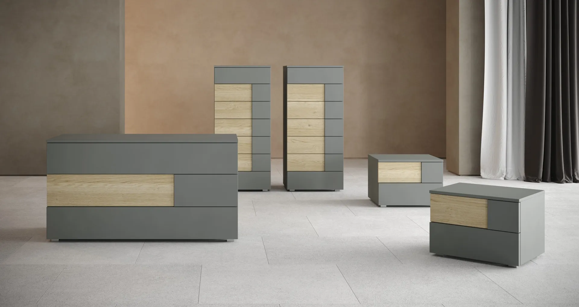 Découvrez les tables de chevet modernes et les meubles avec tiroirs de Giessegi ! Le modèle Oslo Gruppo Notte en laqué mat est le choix idéal.