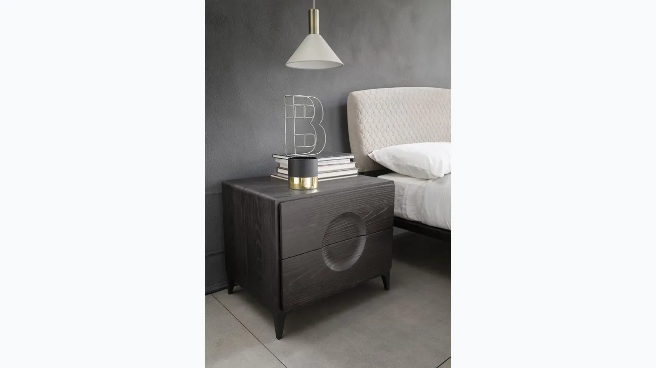 La chambre à coucher comprend également les tables de nuit : des meubles de rangement utilisés au quotidien qui permettent de ranger de petites choses et de disposer de surfaces pour diverses utilisations. Table de nuit Ring de Mobilgam : contactez-nous et découvrez-en davantage sur nos solutions d'aménagement et décorez la chambre comme vous l'aviez imaginé. Grâce à nos ensembles de nuit design de l'entreprise Mobilgam, spécialiste de l'aménagement intérieur pour la chambre à coucher, vous pourrez créer la chambre à coucher dont vous avez toujours rêvé. Mettez en valeur votre intérieur en choisissant des compositions d'objets assortis ou en recréant des associations élégantes de styles et de couleurs grâce au catalogue de meubles et d'accessoires pour la chambre à coucher que nous proposons, comme le modèle en bois illustré sur la photo, également réalisable sur mesure.