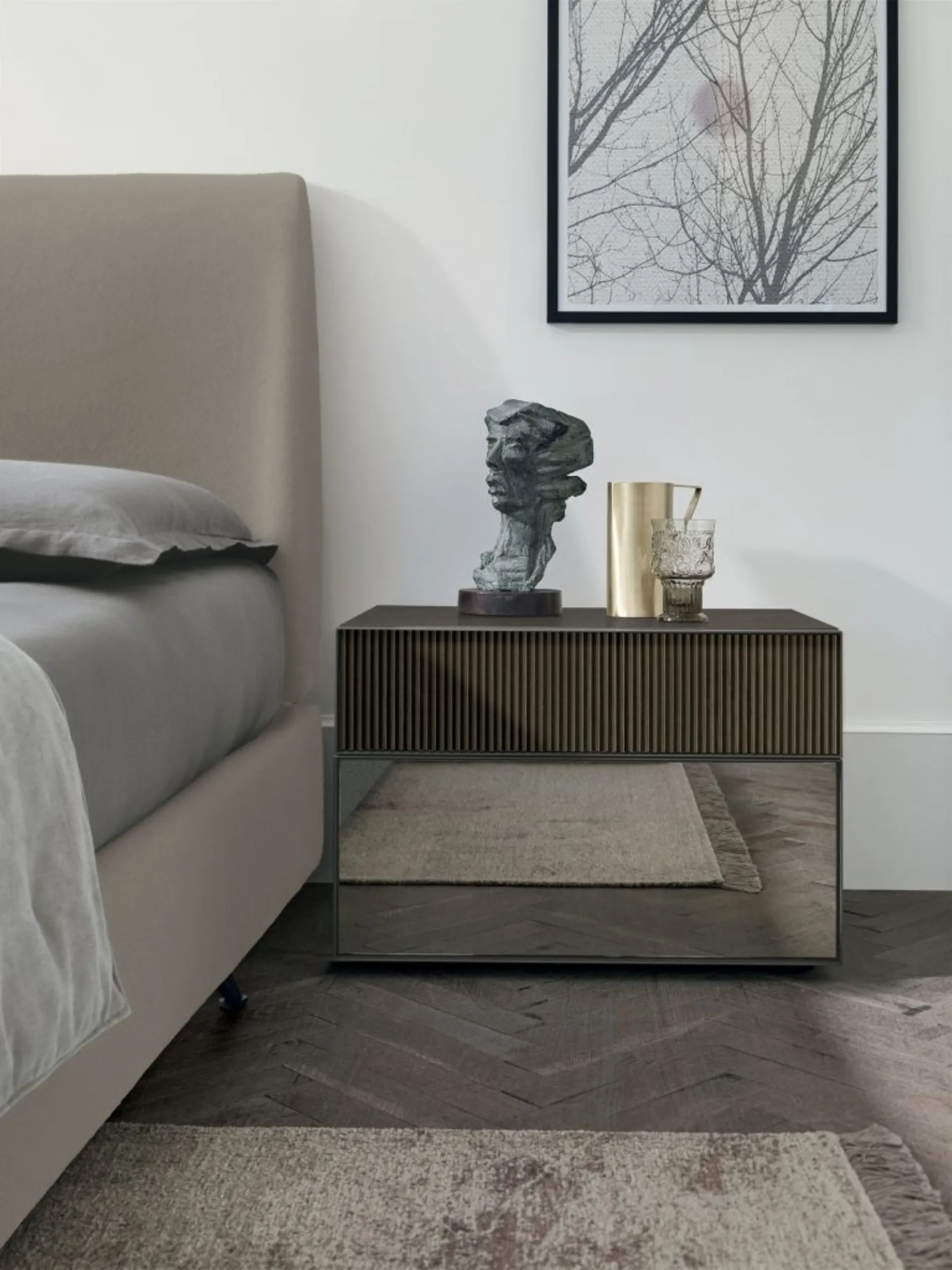 Tables de chevet et groupes de nuit en laque mate pour environnements design : découvrez le modèle